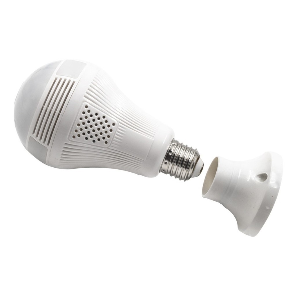 A Câmera lâmpada é do tamanho e formato de uma lâmpada de led comum, é bem discreta, e possui visão de 360º.